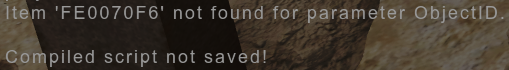 Id FE0070F6 wrong, "Item 'FE0070F6' not found for parameter ObjectID." "Compiled script not saved!"