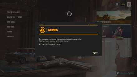 You also have the Snowshoe-3FA3981E for when you try to go into single player from the main menu. With ne it helped to fully restart the console.