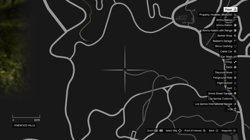 | Behind the Orange Juice stand at the end of a dirt road in Vinewood Hills. | |