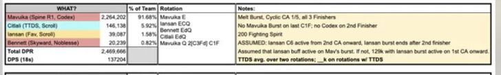 heres the thing iansan can be offrated at any time and at c0 mav team are still around 120k+ DPS so still higher than any DPS. Only at c6 can mav team reach 137k+