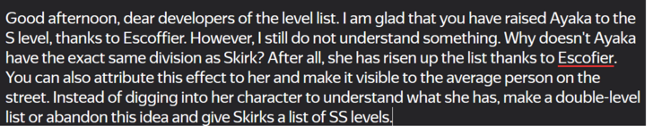It doesn't sound very good. Ayaka with Escoffier and without Escoffier are different heroes, but the fact that Ayaka has many teams is certainly good. However, what's the point if the strongest team with a breakaway from Ayaka is with Escoffier. In this case, they and Skirk are in the same situation, and a double rating doesn't make sense. I'm sorry if it sounds like this, I'm communicating through a translator.