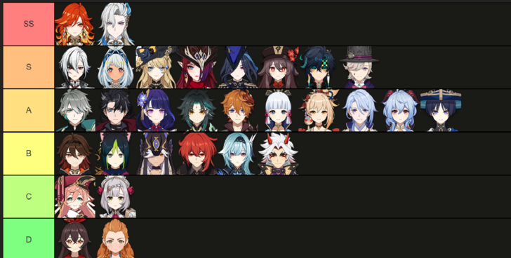 Well it's your list but... Arlecchino still makes SS, she got buffs this patch just like the other top two. You have Alhaitham too low, he may not be SS but he's certainly not A. As much as I love Clorinde, Hu Tao still beats her out at DPS. Ganyu beats out Yoimiya with her extra SubDPS role. Tighnari seems a bit low given how much he frontloads. Itto should be on the other side of Eula. Show C6 Noelle a bit more love. Klee/Keqing/Kaveh/Feminet and Razor are missing, Why?