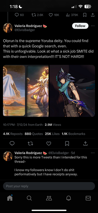 If it’s soooo fictional! Why used their other people culture? Why white wash? Why dark/tan characters bad in game? Why used actually GOD names for culture? Why they do their best when it’s came their own culture (liyue, yunjin, latin rite). Imma stop you right there. You literally sound soo wrong right now. Nobody saying they hating the game, we just want rep if they going to use other cultures.