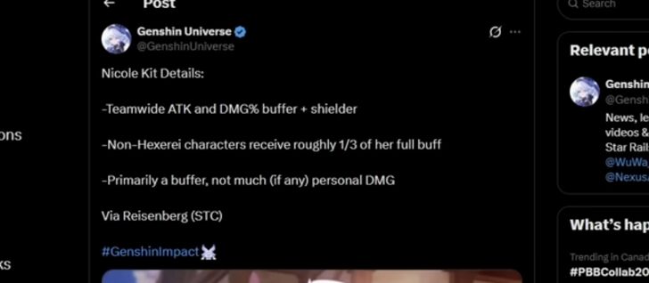 Here's new Nicole leaks she has very low personal damage, she is a damage percent and attack buffer and also a sheilder, non hexrei characters receive around 1/3 rd of her buffs