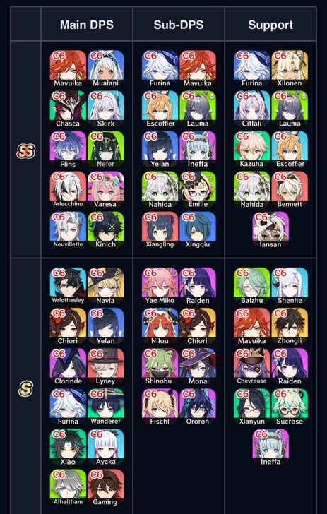 Plus, it doesn't help that G8's tier list is severely flawed now, both in character placements and how the grid is laid out. Sub-DPSes and Supports have become functionally indistinguishable, while generalist hyper-carries are being matched up against ultra-niche paper cannons shackled to 2+ niche supports