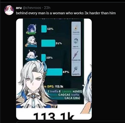 Twitter users don't have any braincells in the first place, 70% of Ineffa's damage is hyperbloom damage, hyperbloom is dendro damage not electro so Ineffa is a dendro character? If that was the case every electro character in this game is secretly dendro, switch Ineffa and put raiden or kuki , team dps won't go that much low...This newcomers and natlan lovers don't even know how reactions other vape, melt, overload works that is leading to this toxicity in these comment section...