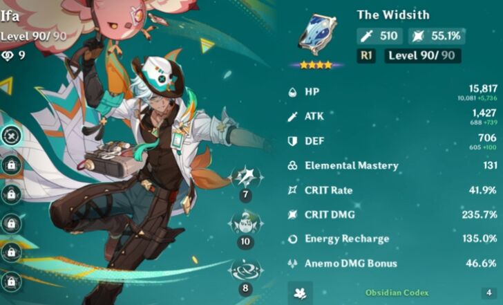 is my ifa build is good? (i turn him into full dps), do i need more crit rate for him? i use obsidian codex for him, atk/anemo/crit dmg, and my ifa is c1 (i know i should get his c6)