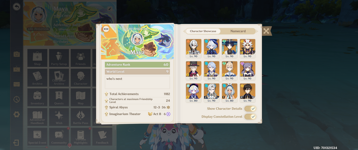 UID : 701321534 Europe AR 60 World lvl 9 I can lend a bunch of C6 characters for the imaginary theater if that helps :) We can also play some events together or I can always help with anything you might need help with !