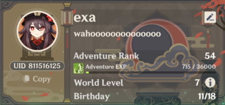 Server: EU UID: 703627544 AR 48 World Level 6 Would love to help! I'd appreciate if anyone helped me get the map at 100% because I don't really know how, or find unusual hilichurls!