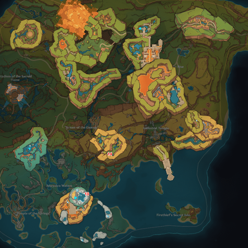 | 59 | ![]() Located by the Teleport Waypoint south of Sumeru City and west of Gandharva Ville. |