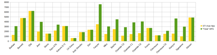 Yaoyao has the highest team-wide healing potential in the game (calculated as ST-heal + AoE-heal * 3)