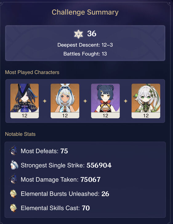 This Abyss is shit! Cyno, Nahida, Raiden and Yaoyao for first half and already lose one star. I never got 3 stars in any of the floor 12 rooms, but I at least kept 3 stars during first half and then lost the third star in second half. But this Abyss is so freaking hard! What kind of GODLY artifacts and WHALE constellations and weapons do you need for this? And F2Ps keep pretending it's possible with F2P roster and Equipment? Good joke!
