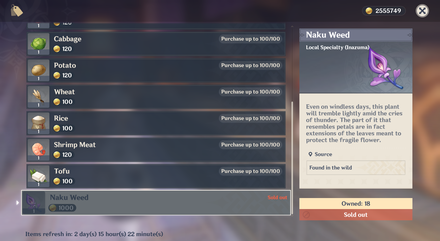 You can also purchase Naku Weeds in Inazuma City, 5/day.