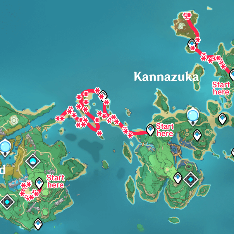 The farming route will start at the Teleport Waypoints in Nazuchi Beach, Kujou Encampent, and Maguu Kenki's arena. The path to Nazuchi Beach is the best location to gather as much Dendrobium in one place!