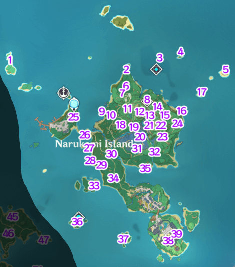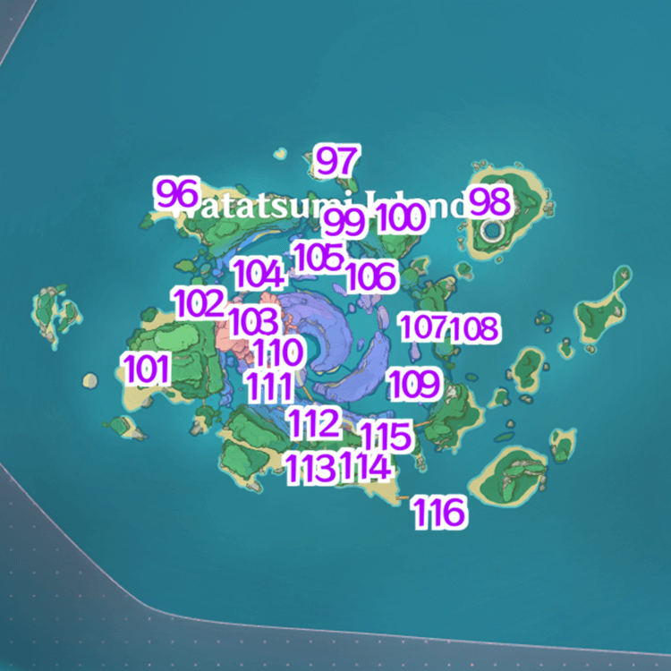 | Electroculus 44 | ![]() Location: Located on the small island west of Kujou Encampment. The Electroculus will be under a wooden house. |