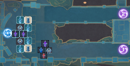 the provided layout only works for pattern 1. For pattern 2 managed to beat it losing 7 hp by replacing the 2 middle towers with furious discharge and on the left side added 1 acranium, 1 inferno, 1 furious discharge and 1 rippling reflection. mainly focused on cryo sticks with a bit of pyro and some banishing sticks. also used klee to break cryo shields