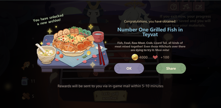 I was trying to cook Exquisite Medaka Dish, but somehow got the Number One Grilled Fish in Teyvat... The other recipes went not wrong, but in the end, I got another dish...