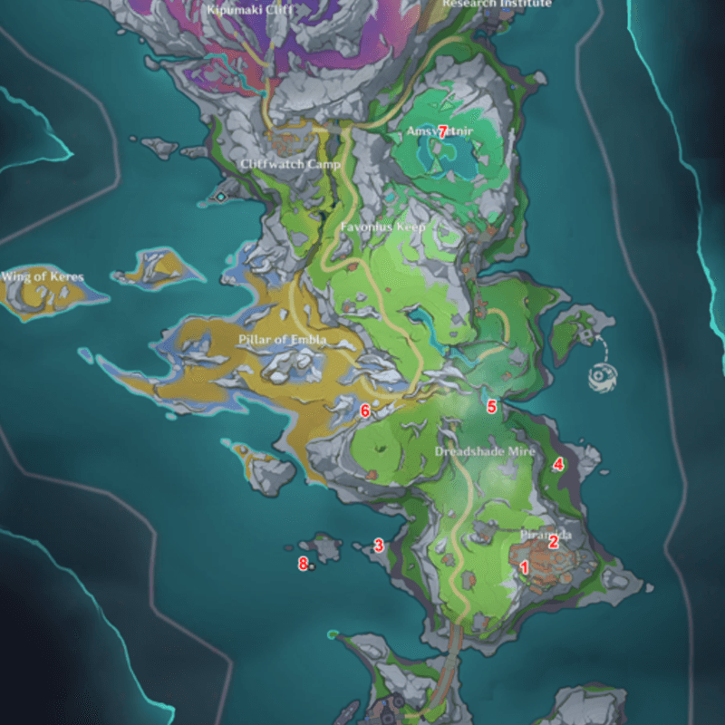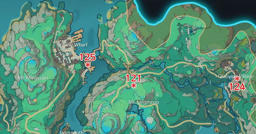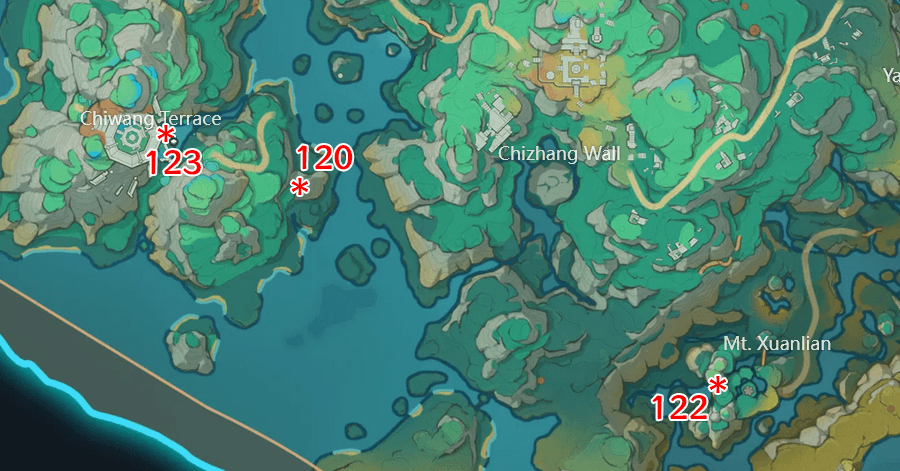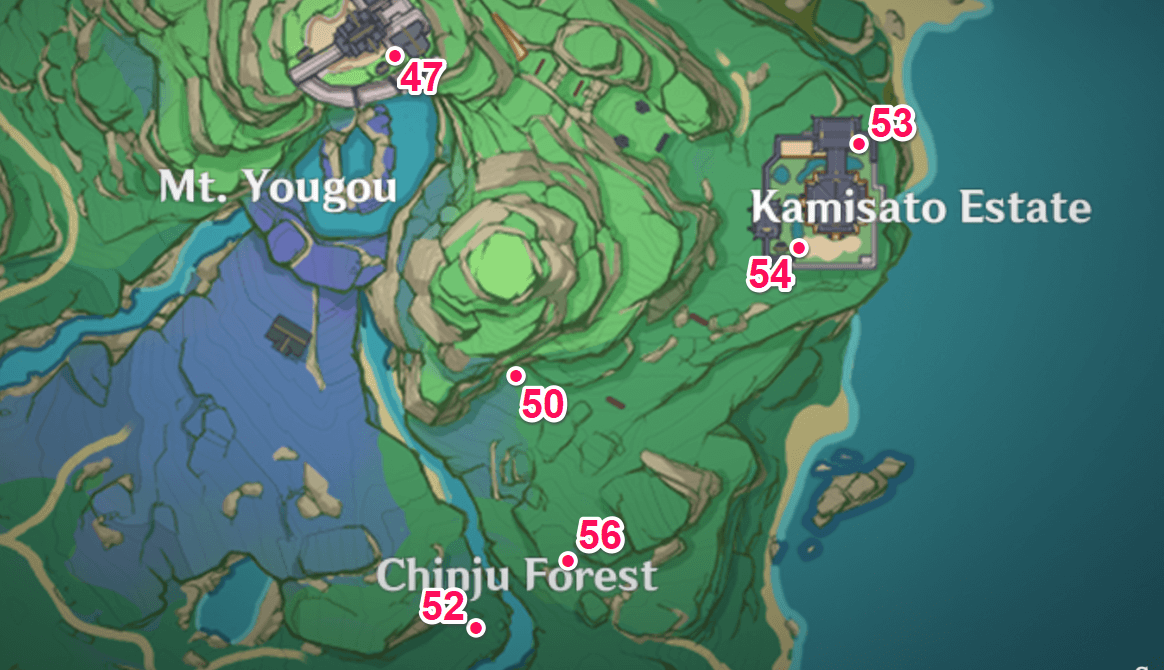 | 54 | ![]() Spincrystal 54 is beside the shrine in the Kamisato Estate in Inazuma. |