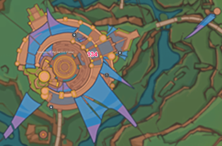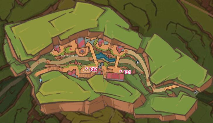 | 74 | ![]() Spincrystal 74 is on top of the highest, large leaf in the middle of the village in Vanarana, Sumeru. You can use four-leaf sigils to get there, and fight the Shroom-kin guarding it. |
