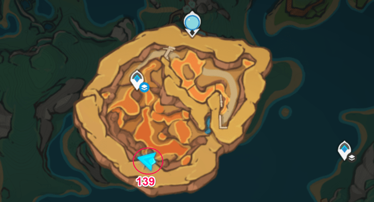 | 76 | ![]() Spincrystal 76 is on top of the giant robot's hand in Devantaka Mountain, Sumeru. |