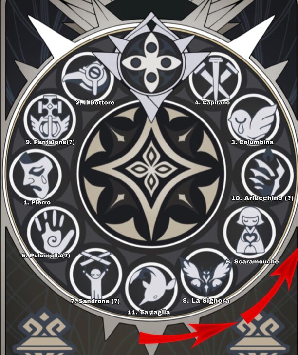 If you take a close look at The Fatui Habingers Constellation Wheel you could see an order : Childe was the first Fatui Habinger we met - Signora was the second - Scaramouche was the third - Alccherino was the Fourth And after Alccherino, you could see Columbina is the next one so there could be a chance of having Columbina in 4.0