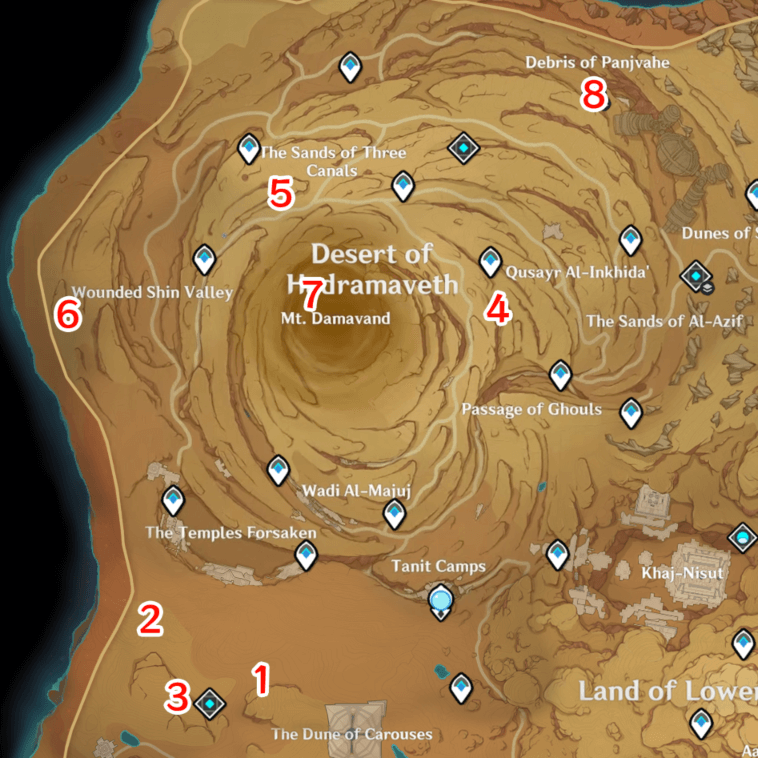 Here's a map of all Sumeru Desert Hidden Waypoints in Genshin Impact 3.4, including the new Desert of Hadramaveth area! See a walkthrough of each underground waypoint location, as well as how to unlock them!
