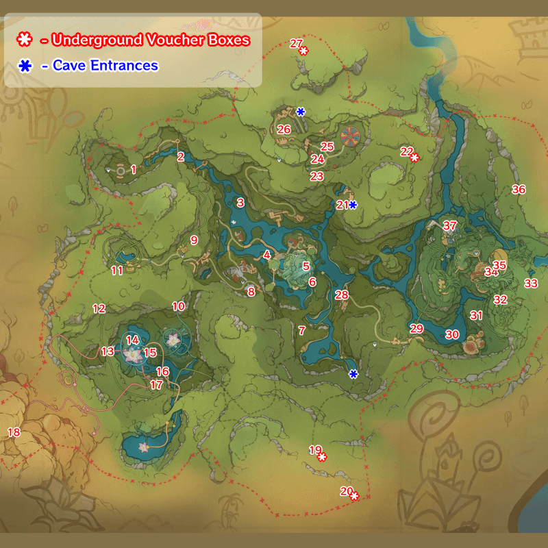 | Tip: Use your browser's page search function to navigate the page by searching a Voucher Boxes number from the map! |