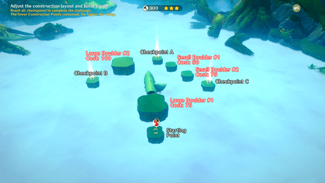 This construction pathway only uses two construction materials, namely Large Boulders and Small Boulders. This Day 1 Construction Pathway only costs 300 points!