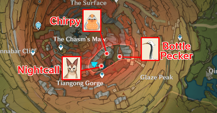![]() To reach Bottle Pecker, it is easier to glide down from Nightcall's location in order to land on the minecart and retrieve the tall bird. |