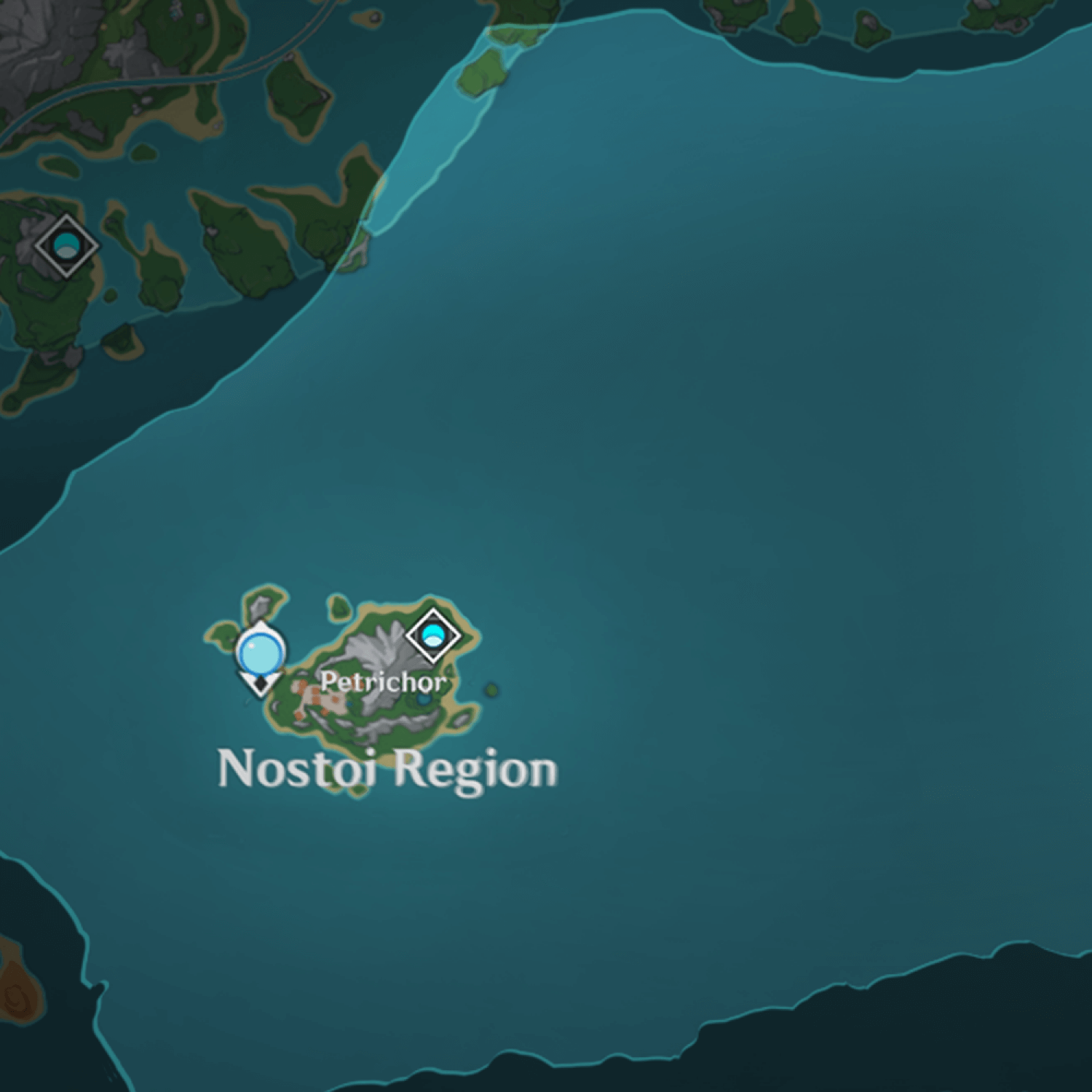 Nostoi Region's on the surface is a small island in the middle of the sea where Petrichor is. A few chests and puzzles can be found within the area, but most of the new region's content is hidden behind its main questline.