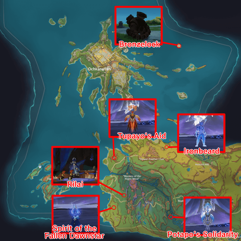 ![]() Found in the eastern area of the Atocpan Region located in Natlan. Teleport at the waypoint located southeast of the Statues of The Seven in the region to reach the Nightsoul Totem. |