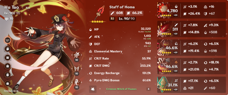 Server and UID: 720622414 (EU Server) Characters I have are: -c0 clorinde with misplitter r2 -c1r1 hu tao -c0r1 arlecchino -c1r1 ganyu -c0 xianyun -c0 navia -c0 eula -c0r1 ayaka -c0r2 nahida -c0r1 furina (pulling for cons currently for furina) -c0r1 yelan -c6 bennett (if anyone needs it for the pyro bonus) https://enka.network/u/720622414/