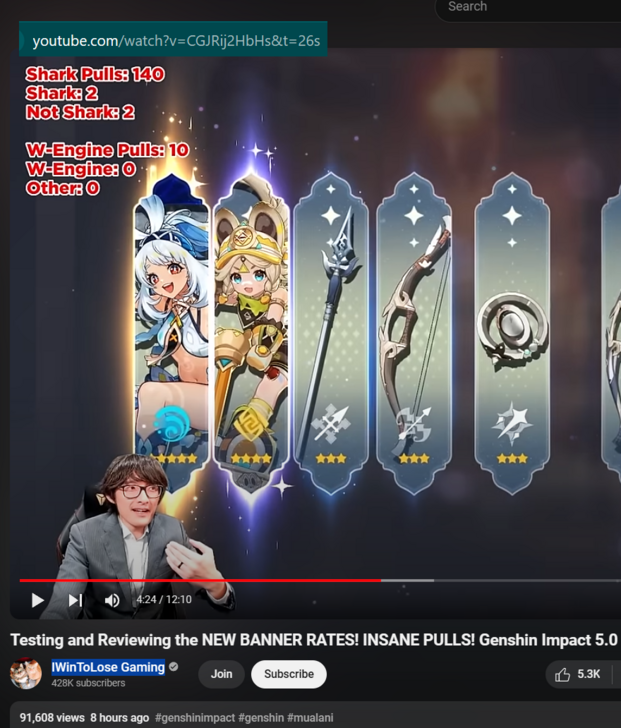 looks like false marketing. watched IWinToLose Gaming, he won 4 5-star characters in just 140 pulls. 2 of which are Mualani. i made 170 pulls on mualani's banner and only got 1 mualani and 1 diluc. pretty convinced at this point that most of the youtube content creators are showing impossible luck. no offense iwintolose, i like your content, just not this kind of false marketing content