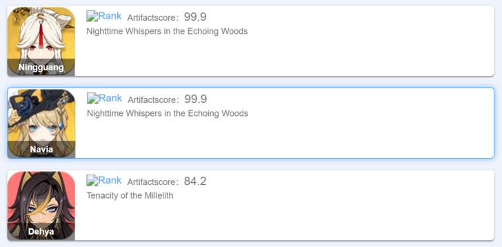 I find this app really helpful, but you need to set artifact to lvl 20 ALWAYS for it to work. If your artifact has score of B when it has 14 lvl or higher, then it's not worthy to upgrade unless app shows you another character with S rank or A. I'm really up for this app, waiting for Mavuika and other new characters. Keep the good work!!