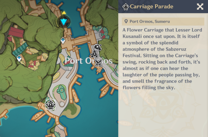 The Flower Carriage can be found in Port Ormos after the event has been completed.