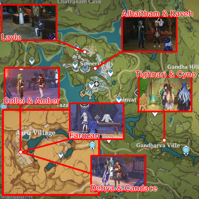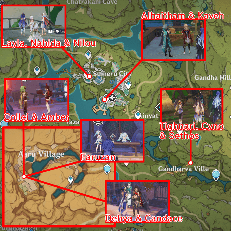 Characters can be found in Gandharva Ville and Aaru Village after completing the event quests in Genshin Impact 6.1. Check out where they are located, and how to unlock character locations in this guide!