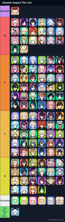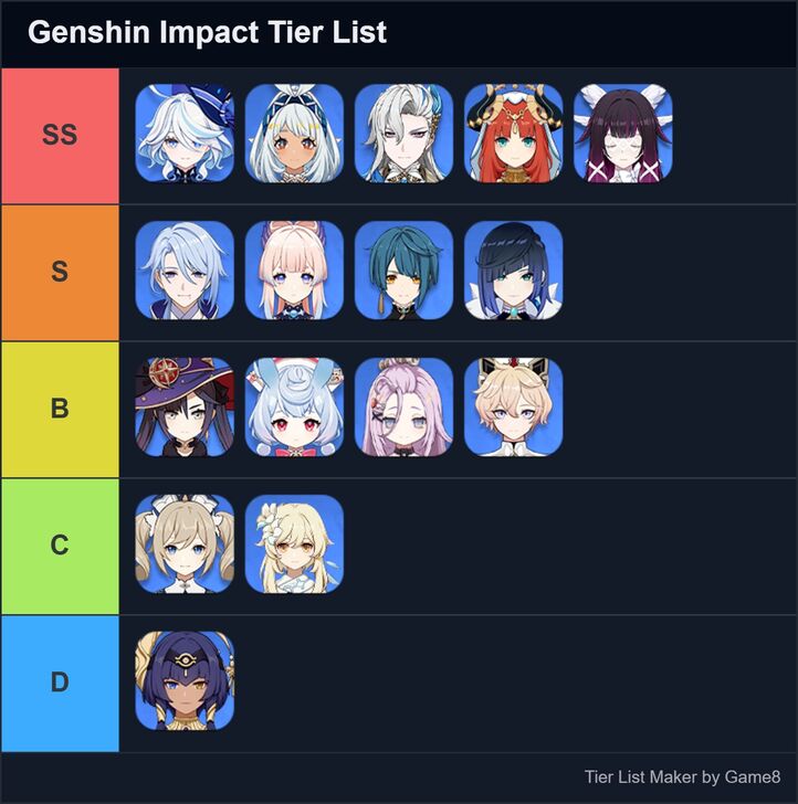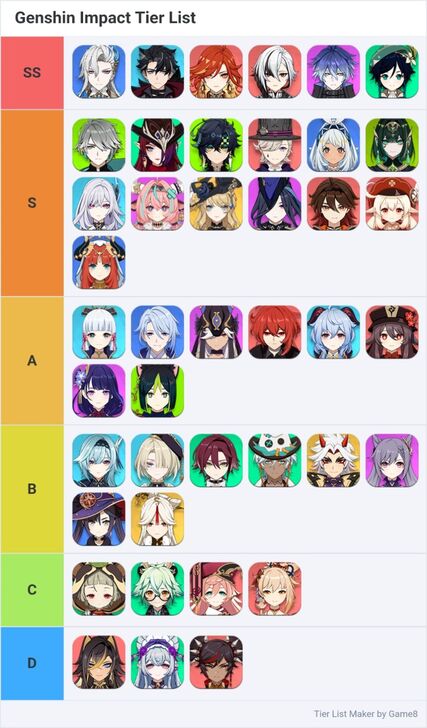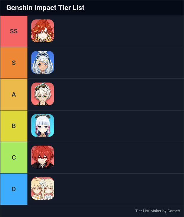 Game8’s Genshin Impact Tier List Maker. Create, submit, and vote for community tier lists here!