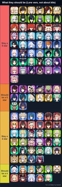 Organized by most deserving of the new/staying star rating (Archons most deserving, last ones least deserving) - All hearth siblings are trained assassins - Natlan characters are the most combat adept from the war with the abyss