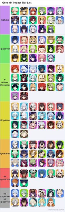 Тир лист персонажей от тех что нравятся, до тех, что не нравятся