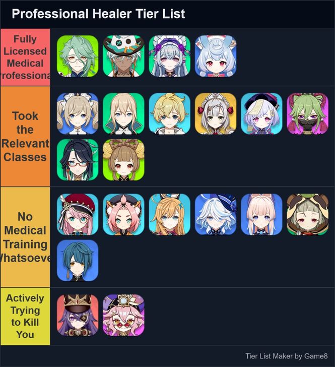 I didn't include anyone who can't heal at c0 because they have even less of a chance in this tier list