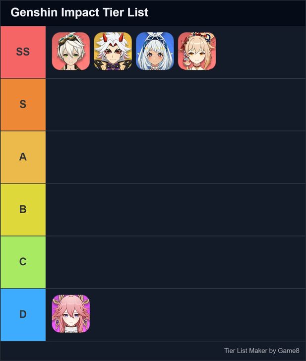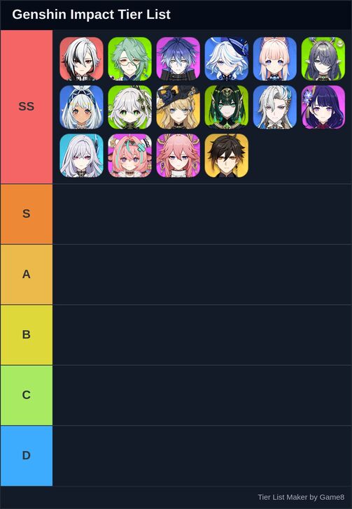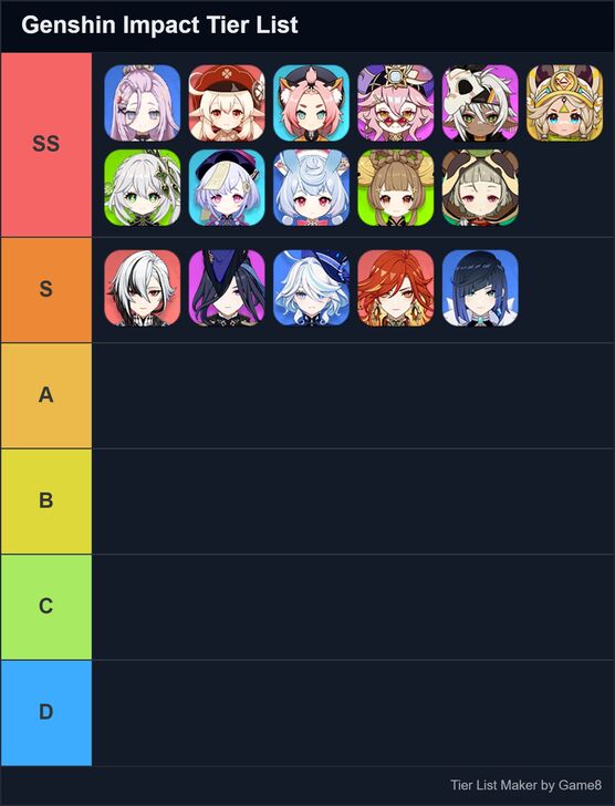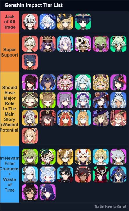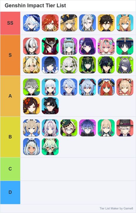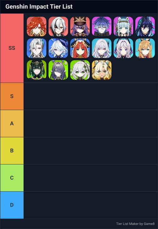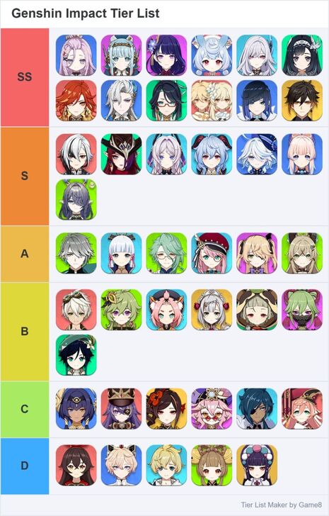 Game8’s Genshin Impact Tier List Maker. Create, submit, and vote for community tier lists here!