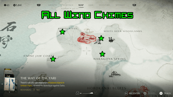 | 1.4 | ![]() You can find the fourth and last wind chime slightly northwest from Storyteller's Rest. The wind chime is kept by a ronin at the river where a lone tree is. You have to defeat the ronin to get the wind chime. |