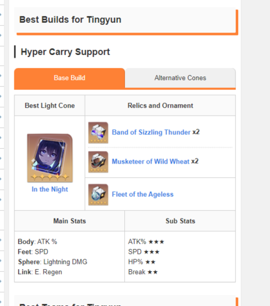 There is an error in builds for Tingyun. In builds all hunt cones, but she's a harmony...