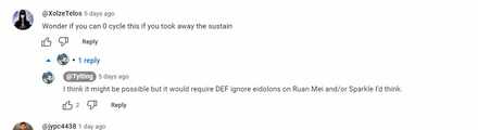 e0 s1 jingyuan like usual. just search it yourself. the uploader used huohuo for heal and they stated they could 0 cycle with rm in the comment lol
