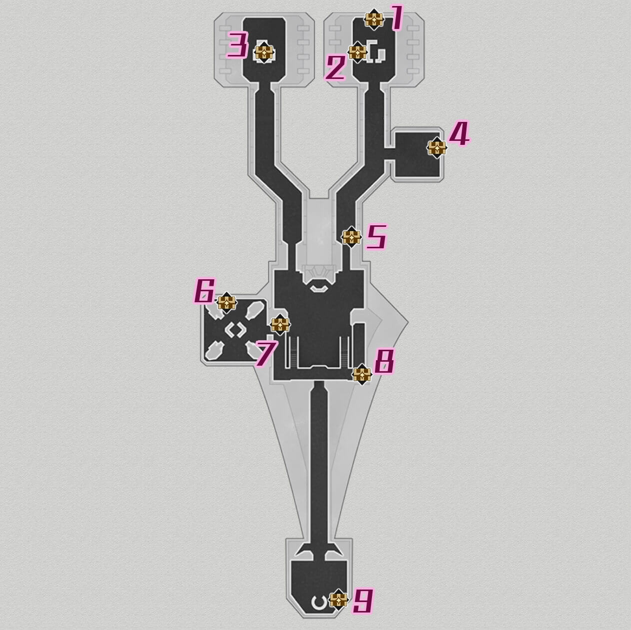 Chest 9 is located in the southernmost room of the map. Right beside a container with a yellow lid and near the Stagnant Shadow: Shape of Quanta.