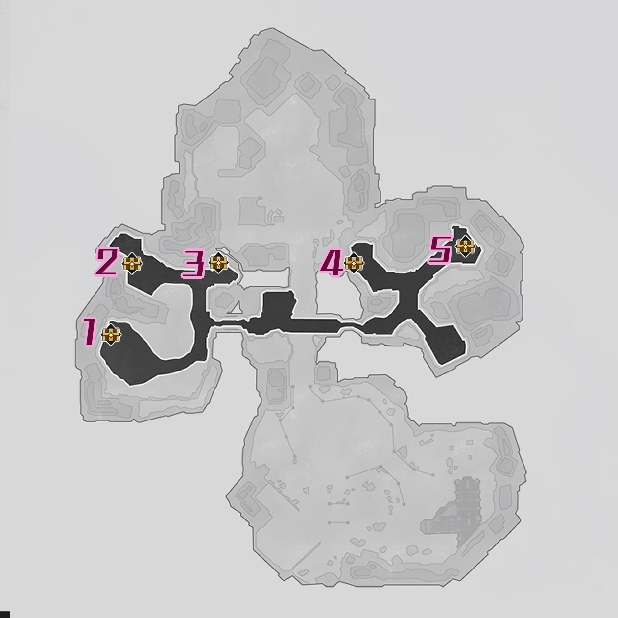 Chest 5 is located east of Chest 4. The chest is guarded by a Formidable Foe. Defeat the Searing Prowler in order to gain access to the Chest.