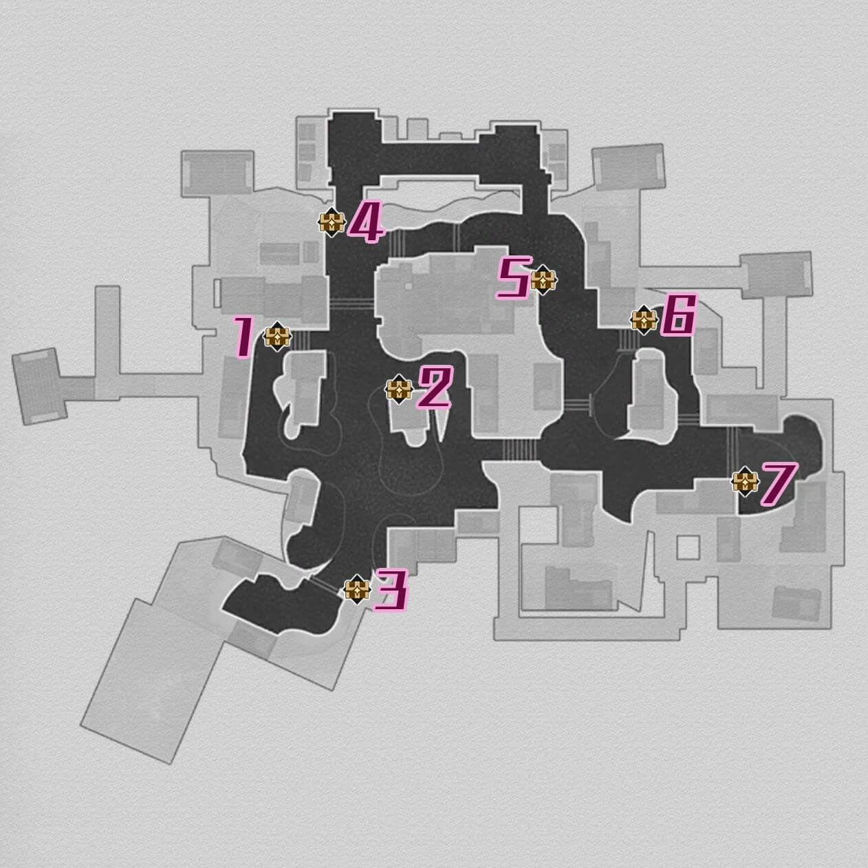 Chest 7 is located in the easternmost side of the map. From the Cosmos Street Space Anchor, go east and down the stairs. Then, turn right and the chest should be under a street lamp.