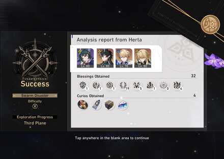 How to complete Swarm Disaster, even difficulty 1? Path Resonance: Abundance with Anatta, Anicca and Terminal Nirvana Path Resonance 2: Propagration with all 4 Resonances Blessings: All Abundance, Propagration and Healing Related Blessings Team: Luocha, Lynx, Fu Xuan, Gepard Curios: All Positive Curios Except for Galatic Big Lotto, More Fragmentrum No Blessings, Scissors Reset Blessings, Path Waxes except for Abundance and Propagration, etc.