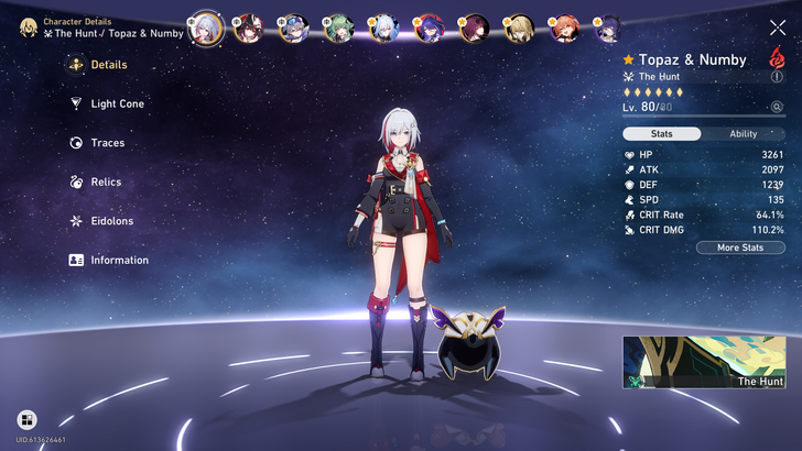 i'm planning to bring her with dr.ratio, is she good with 2k atk without her sign lc? currently using hunt lc from herta shop and it's s5