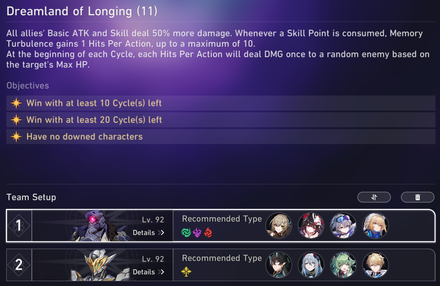 You can also use a mono-quantam team if you have your qingque prepped for dreamland of longing since she uses a ton of SP therefore making the turbulence stacks pretty high frequently. I dont own fu xuan but I had my qingque with rutilant arena 71% crit rate and 115% crit damage, tho downside is it gets scary when the dino spits fire since u cant really consistently get him to 6 stacks so just prayge your team dont die by it xd managed to win just on 20 cycles left